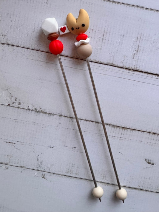 Pair of Fortune Cookie Amigurumi Sewing Sticks