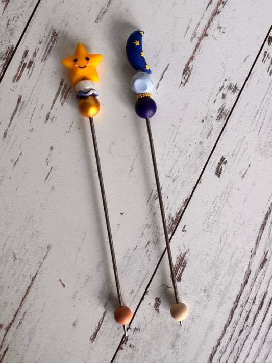 Pair of Star and Moon Celestial Night Sky Amigurumi Sewing Sticks
