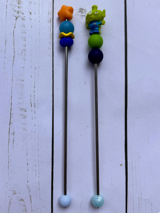 Green Alien Toy Pair of Amigurumi Sewing Sticks