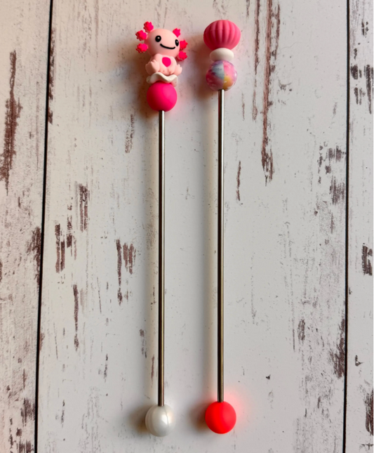 Pink Axolotl Pair of Amigurumi Sewing Sticks