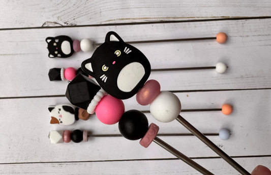 Pair of Squishy Black OR Calico Cat Amigurumi Sewing Sticks