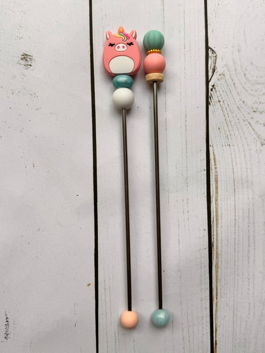 Chubby Pink Unicorn Pair of Amigurumi Sewing Sticks