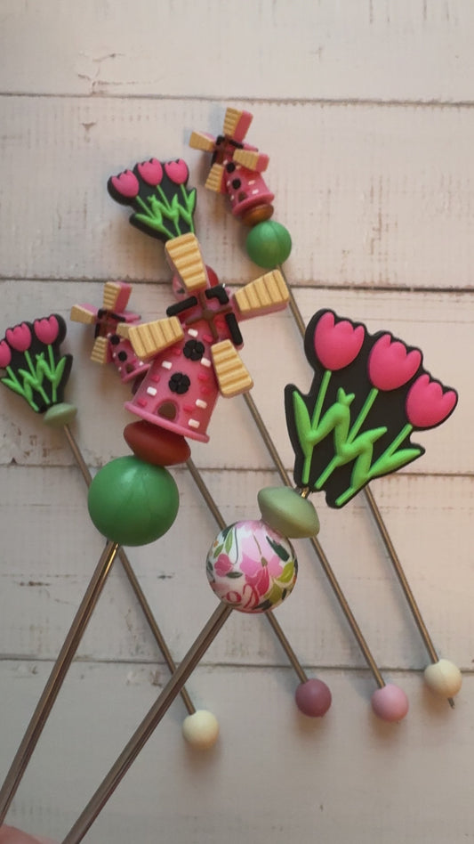 Pair of Tulip and Windmill Amigurumi Sewing Sticks