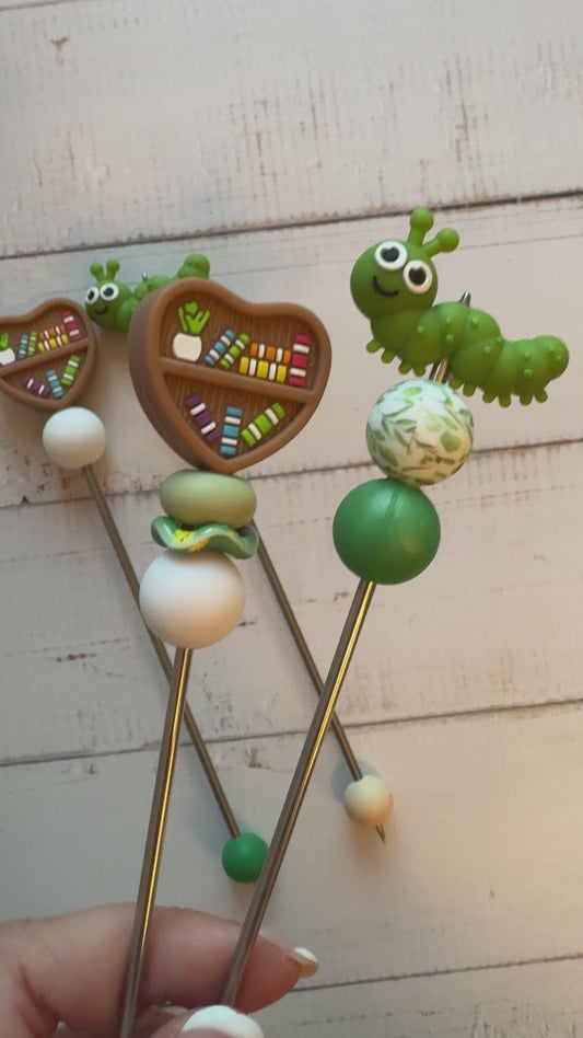 Pair of Bookworm and Bookshelf Amigurumi Sewing Sticks
