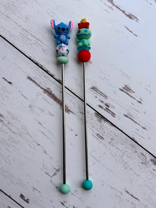 3D Blue Alien and Patchwork Doll Pair of Amigurumi Sewing Sticks