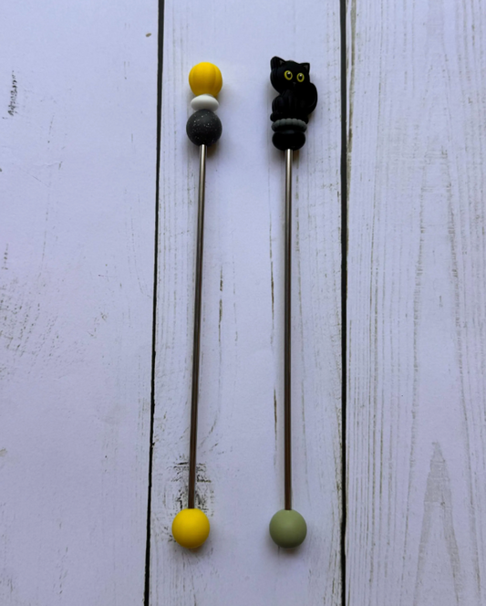 Pair of Black Cat Amigurumi Sewing Sticks