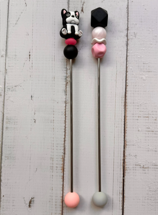 Pair of Black & White Bulldog Dog Amigurumi Sewing Sticks