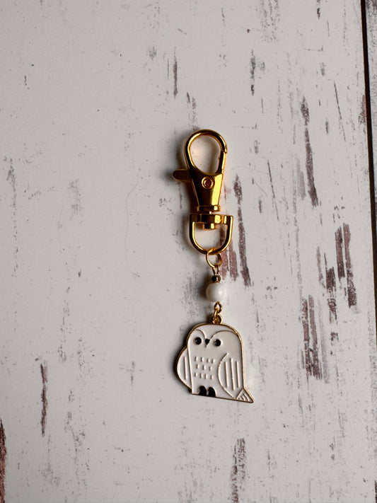 White Snowy Owl Single Stitch Marker